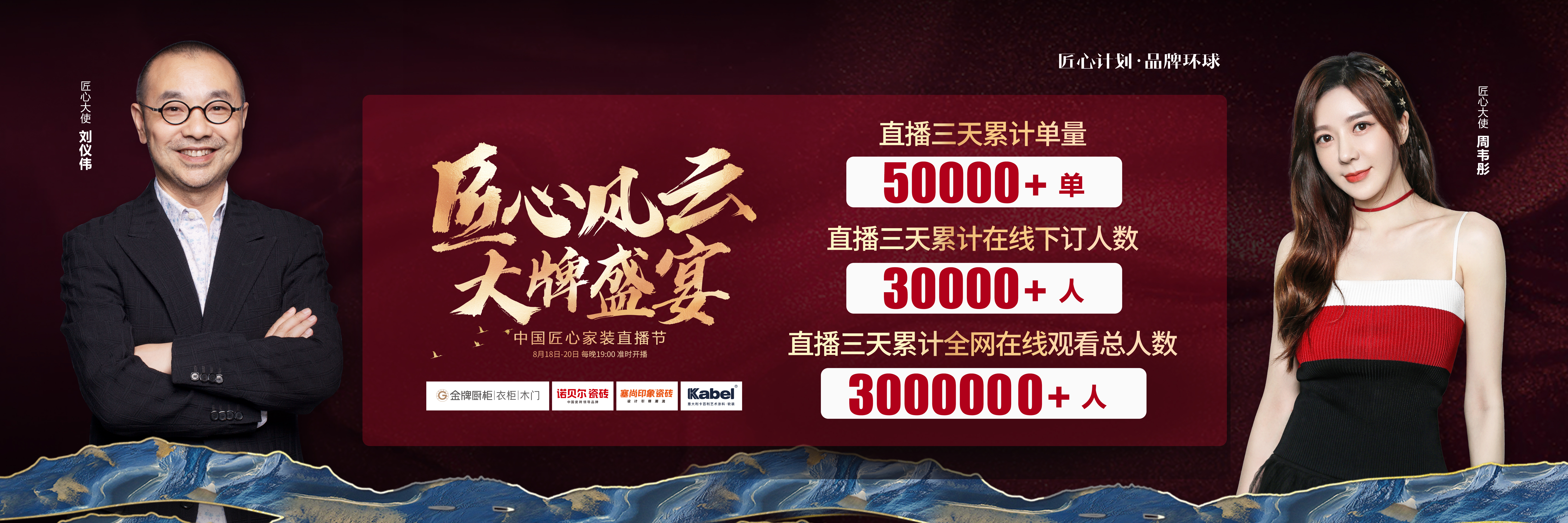 由713贵宾会厨柜、诺贝尔瓷砖、塞尚印象瓷砖、卡百利艺术涂料联合缔造,创赢科技系统支持全案营销执行的“匠心风云 大牌盛宴”中国匠心家装直播节于8月20日圆满落...